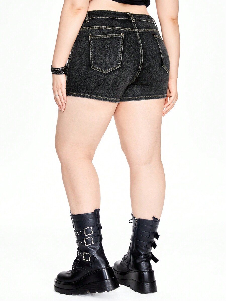 Grunge Punk Plus Size Women's Pocket Decor Denim Shorts