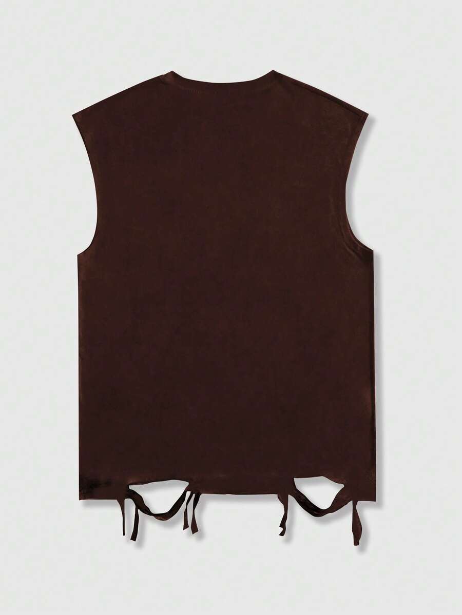 Grunge Punk Punk Street Style Graphic Print Sleeveless Crew Neck Tank Top With Rhinestones And Distressed Details, Men Summer
