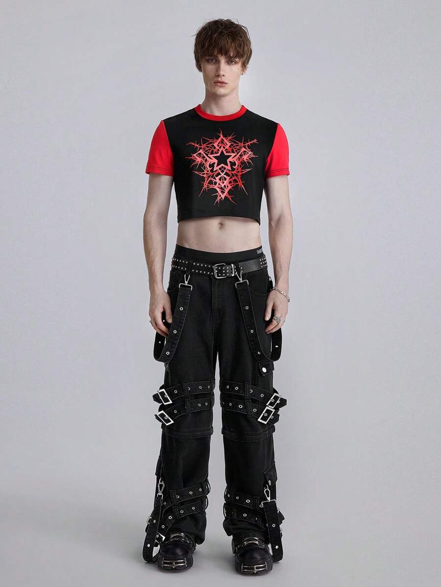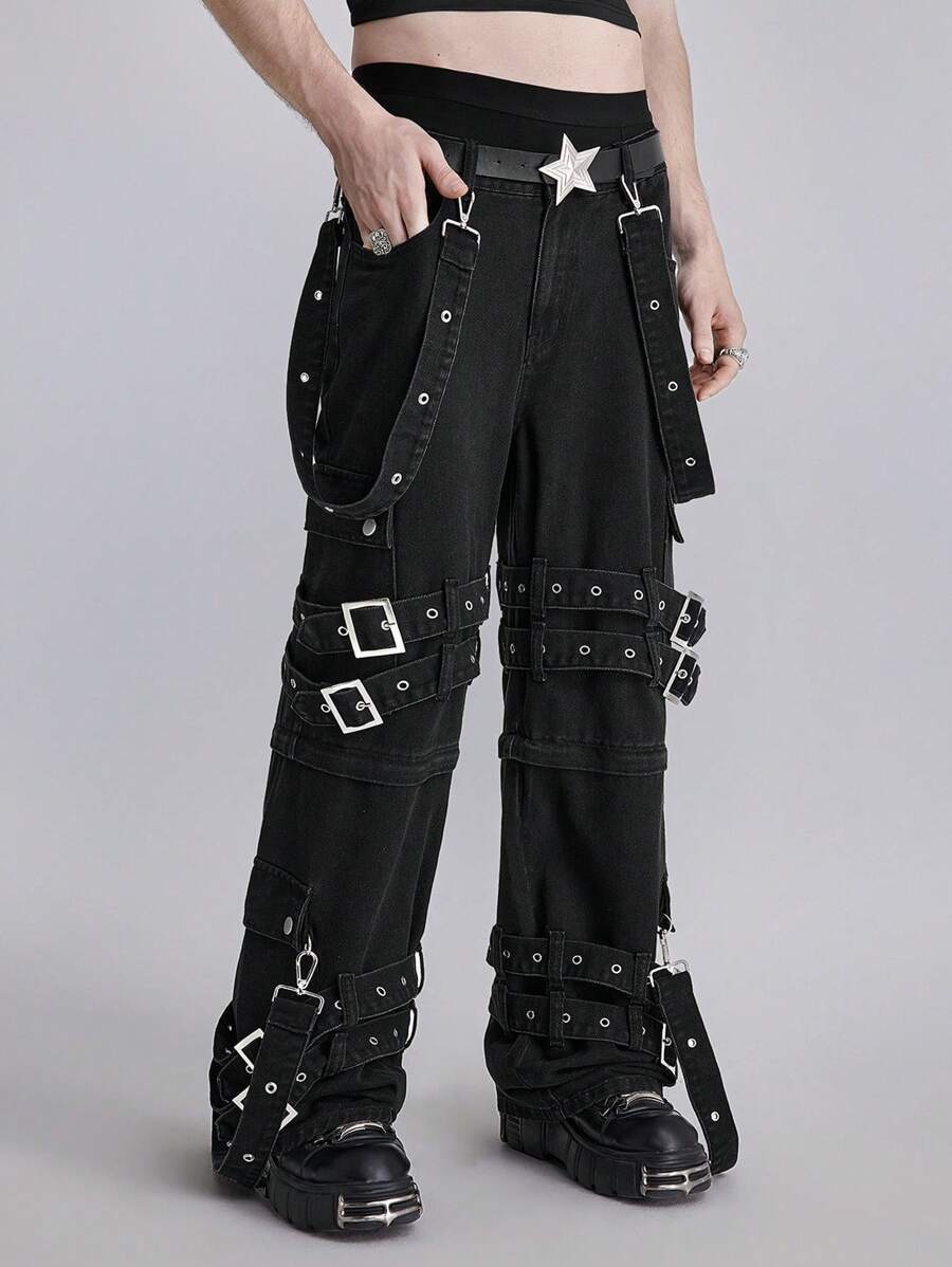 Grunge Punk Punk Style Detachable Overalls Men's Jeans