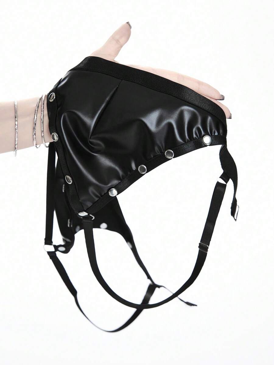 Grunge Punk Punk Style PU Studded Triangle Bra And G-String Lingerie Set, Sexy