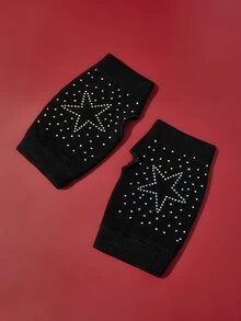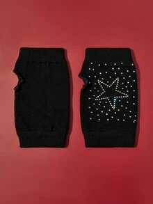 Grunge Punk Rhinestone Decor Fingerless Gloves