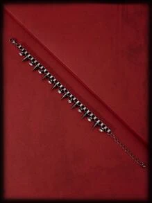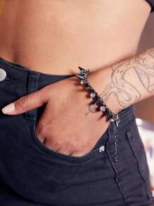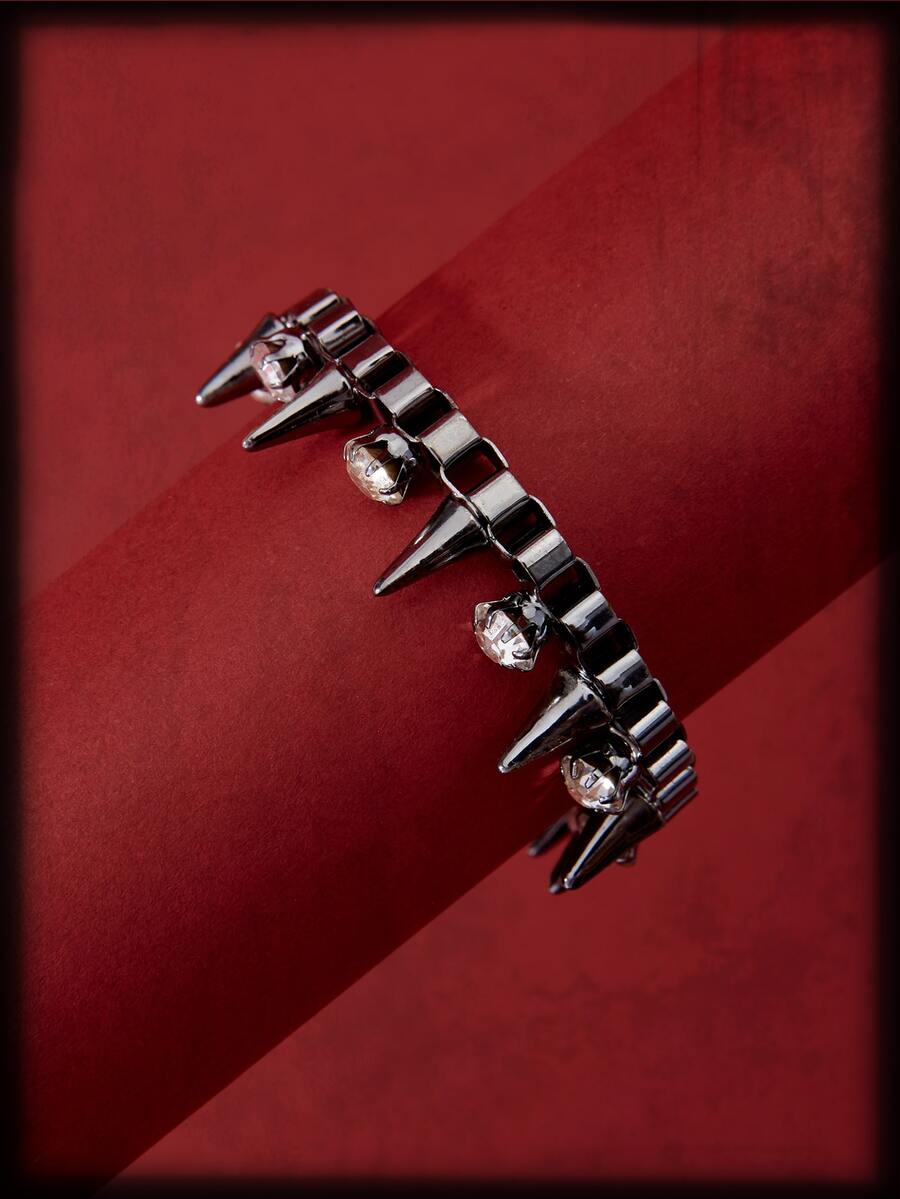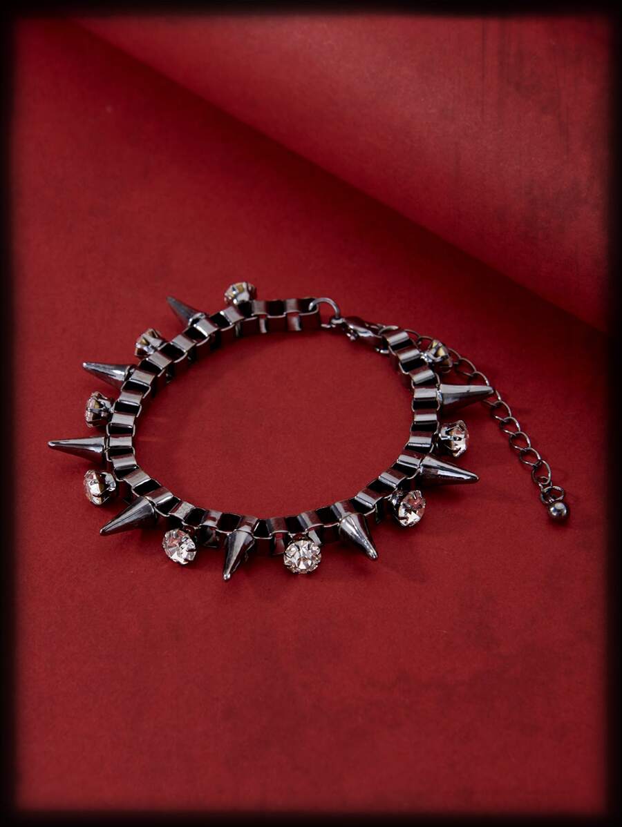 Grunge Punk Rhinestone & Spiked Decor Chain Bracelet