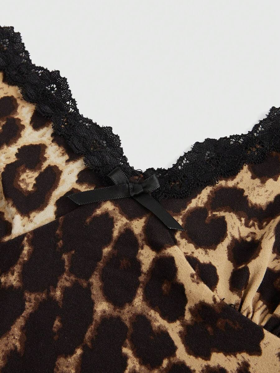 Grunge Punk Sassy Leopard Print Lace Trim Cami Dress For Women, School