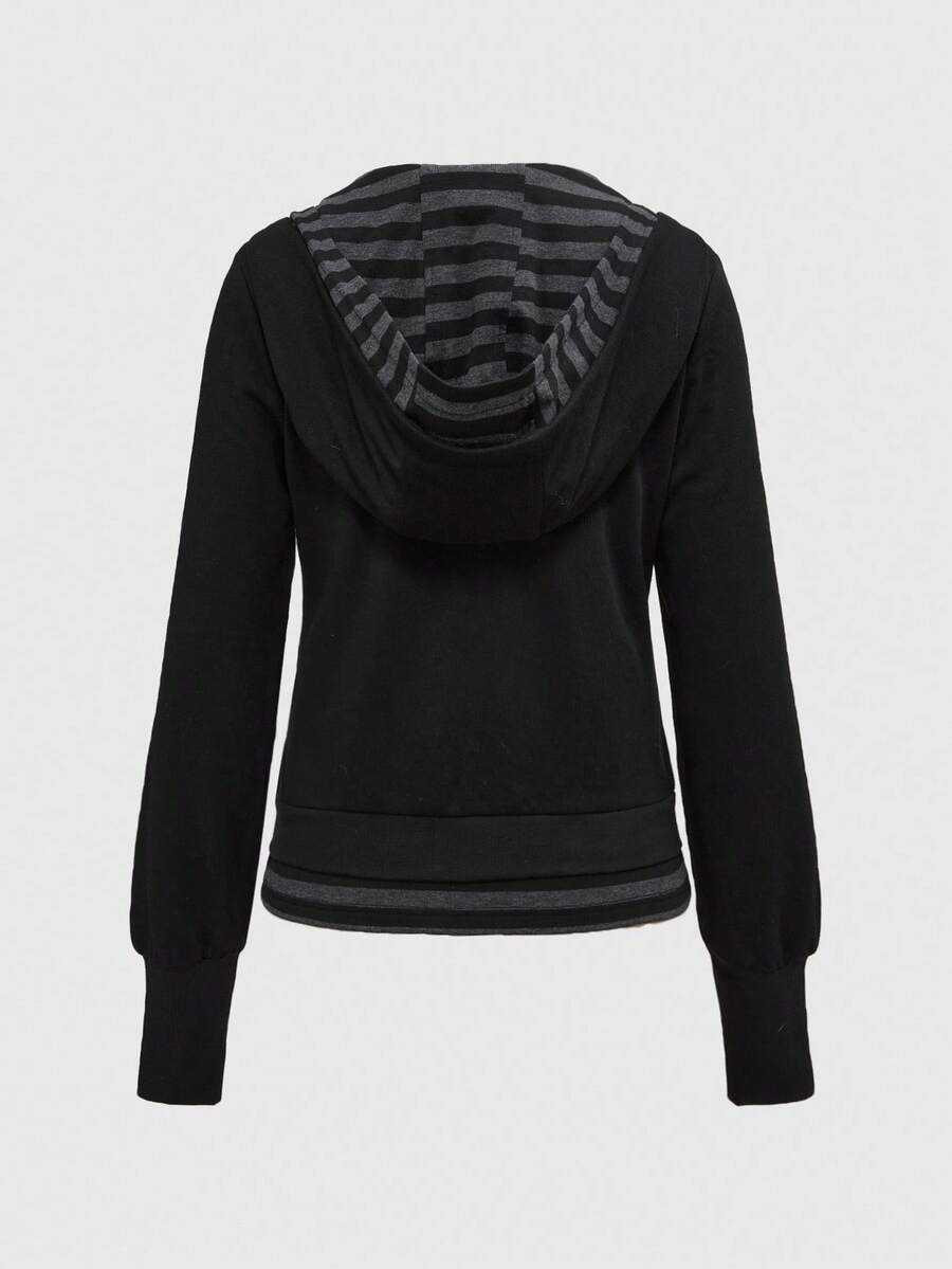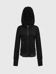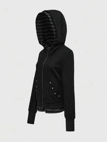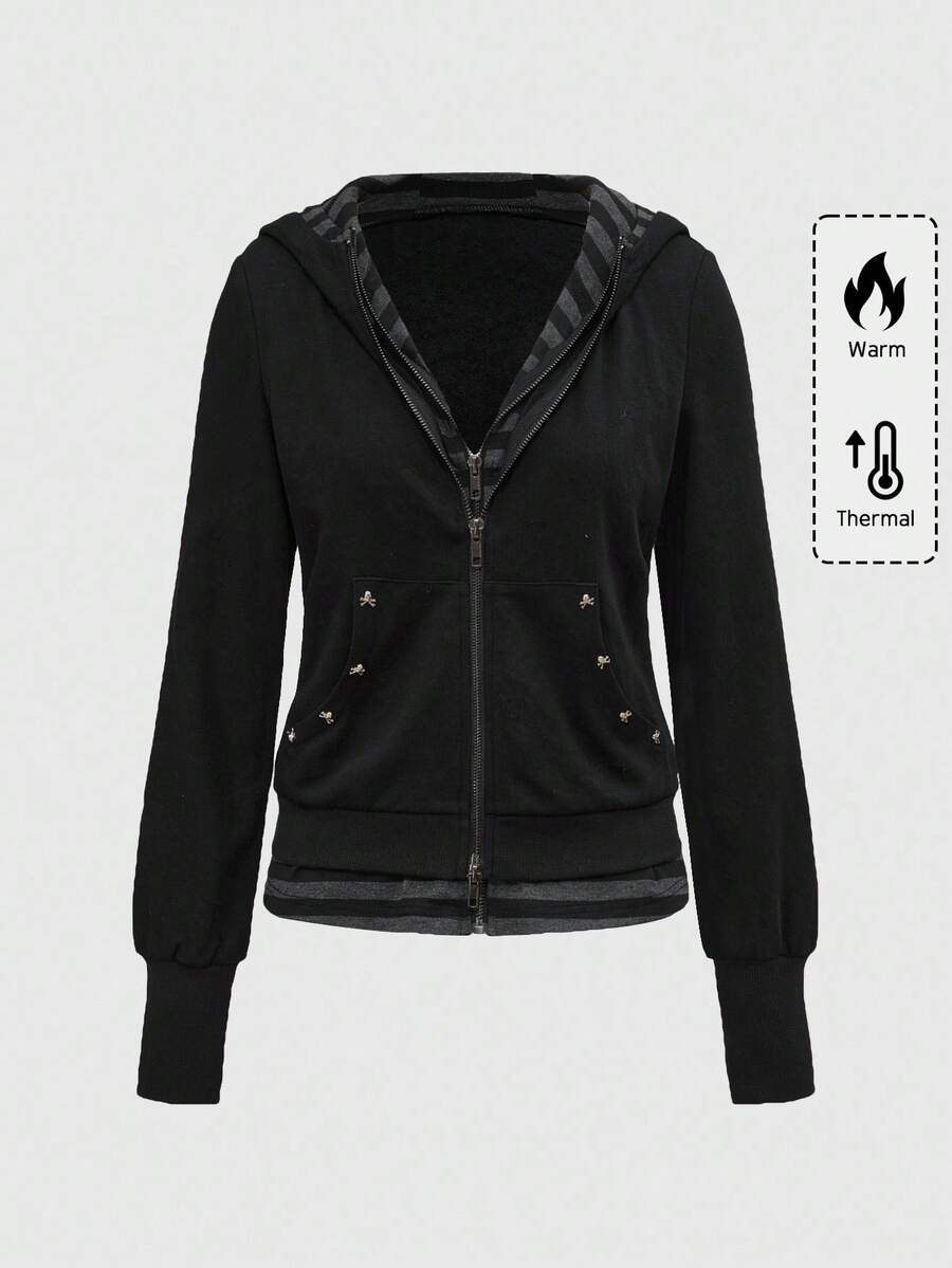 Grunge Punk Grunge Punk Skull Rivet 2 In 1 Loose Fit Black & Gray Vintage Open Front Hoodie Sweatshirt