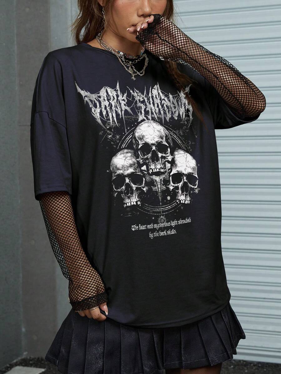 Grunge Punk Skull Slogan Graphic Drop Shoulder Tee