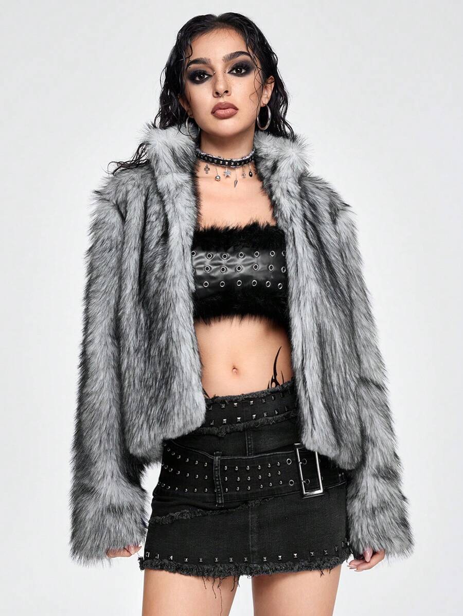 Grunge Punk Snow Outfit Wasteland Grunge Vintage Faux Fur Fleece Jacket