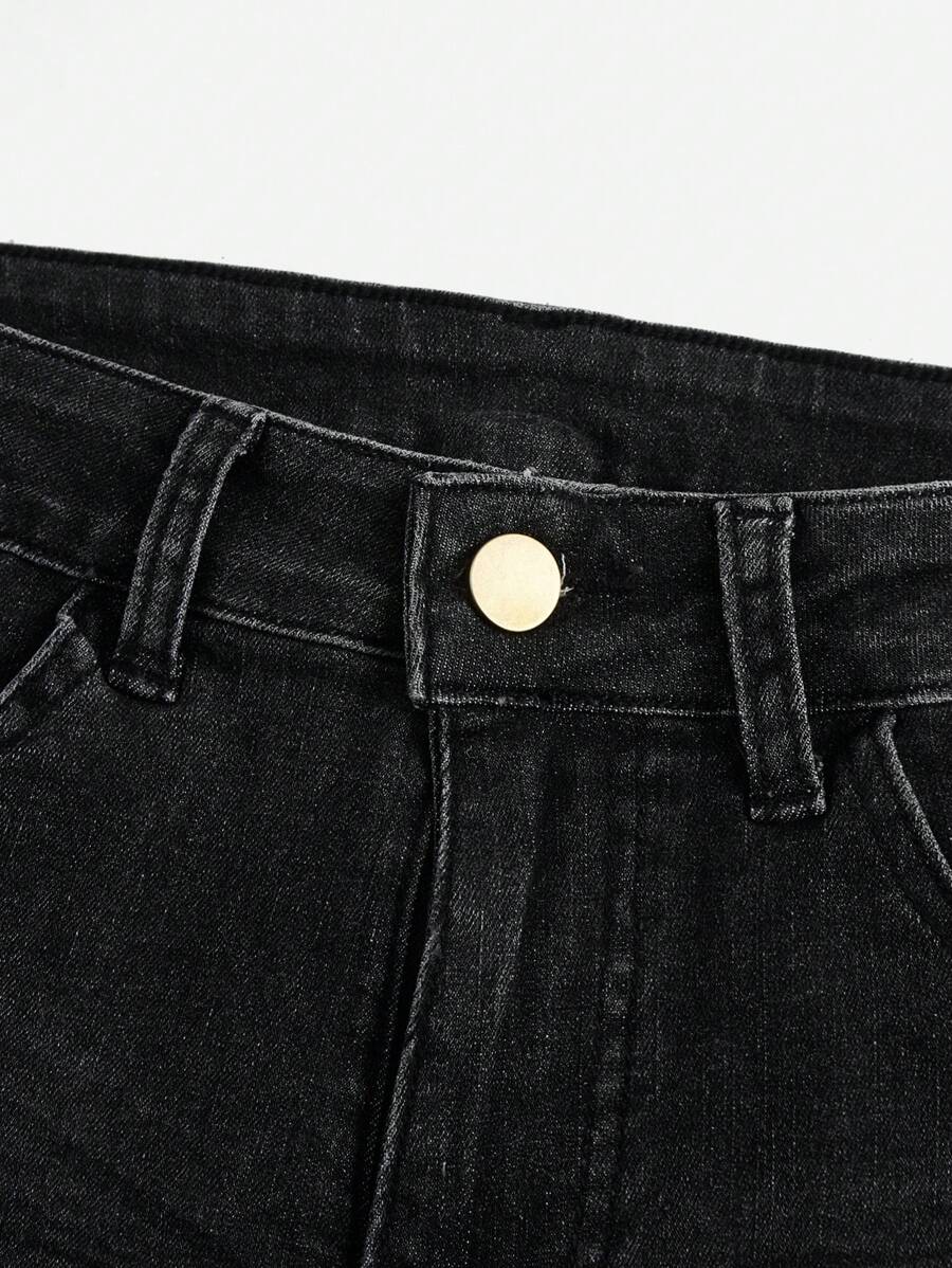 Grunge Punk Solid Raw Hem Low Waist Denim Shorts, School