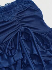 Grunge Punk Spring Break Concert Women Rave Festival Valentine's Day Low-Waist Leopard Print Lace Trim Sexy Vintage Layered Ruffle Tie Bow Pleated Women Mini Skirt
