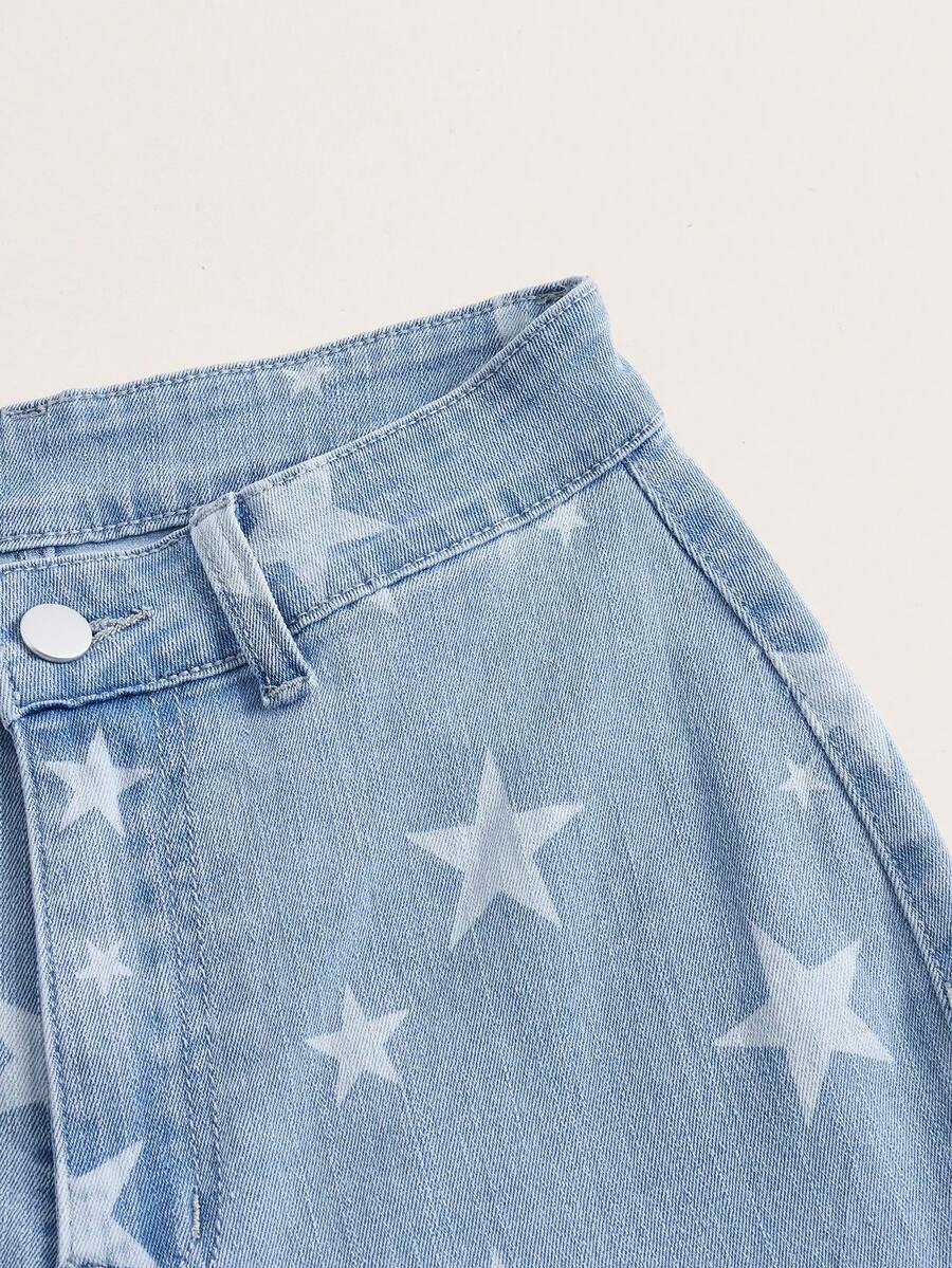 Grunge Punk Star Print Ripped Flare Leg Jeans