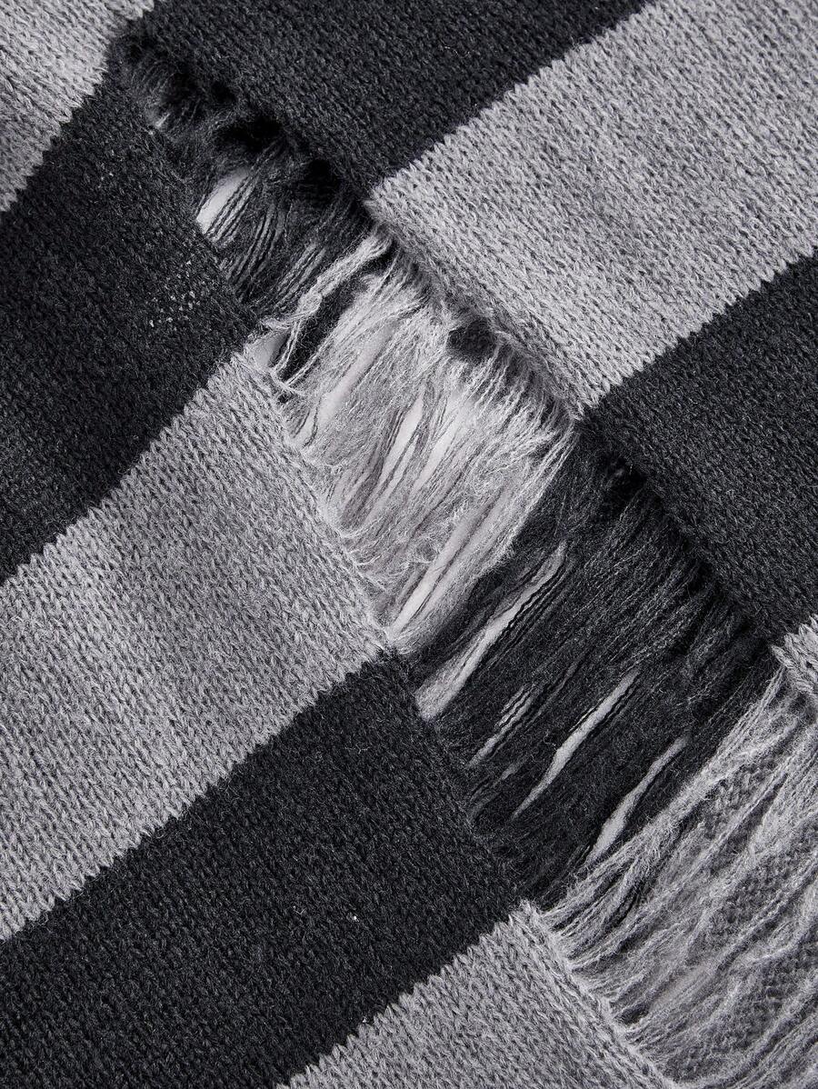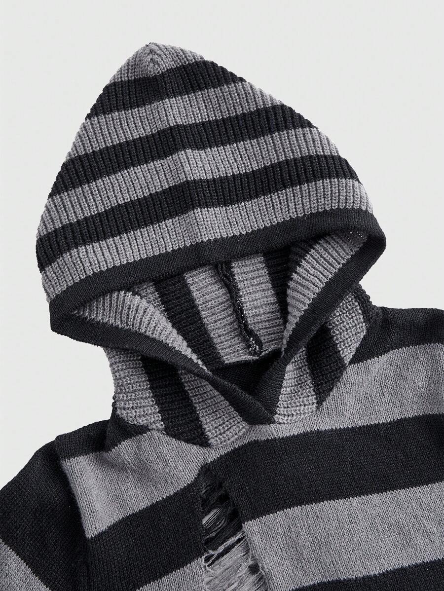 Grunge Punk Striped Distressed Hooded Sweater, School