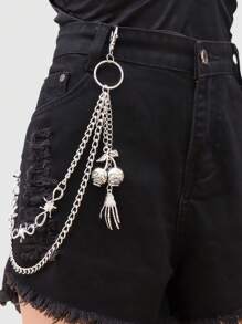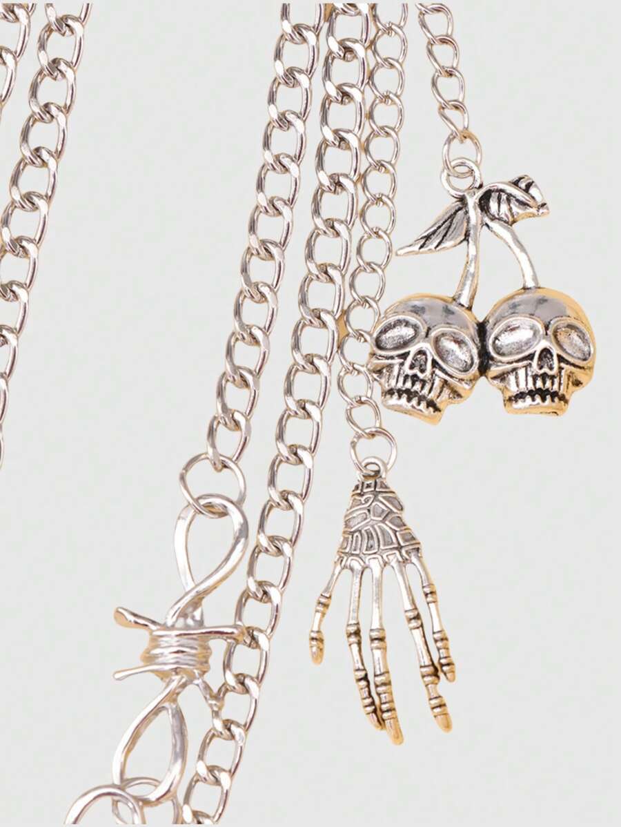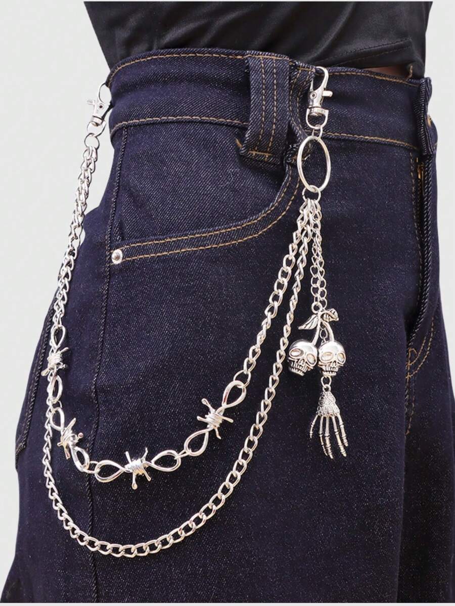 Grunge Punk Unique Skull & Thorns Double-Layer Metal Trouser Chain, Festive Celebration