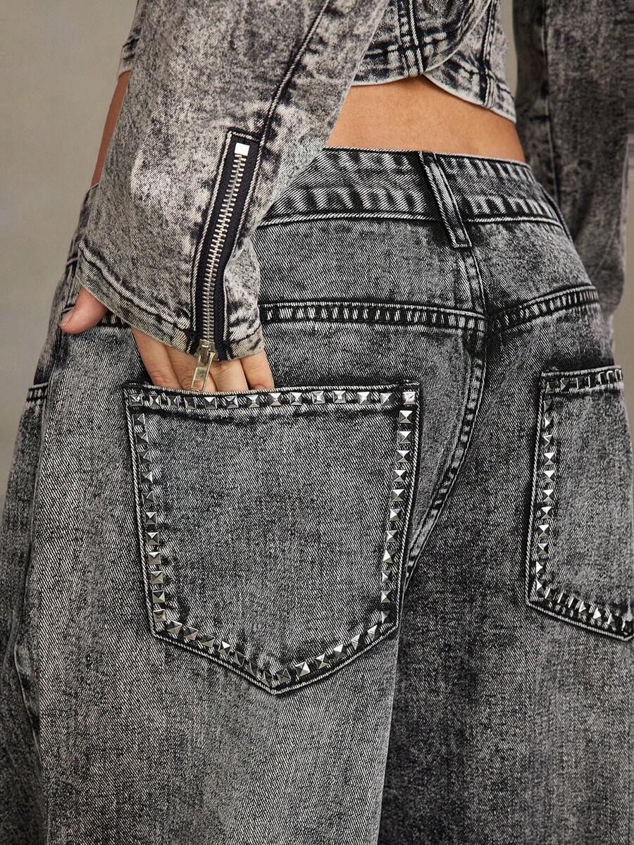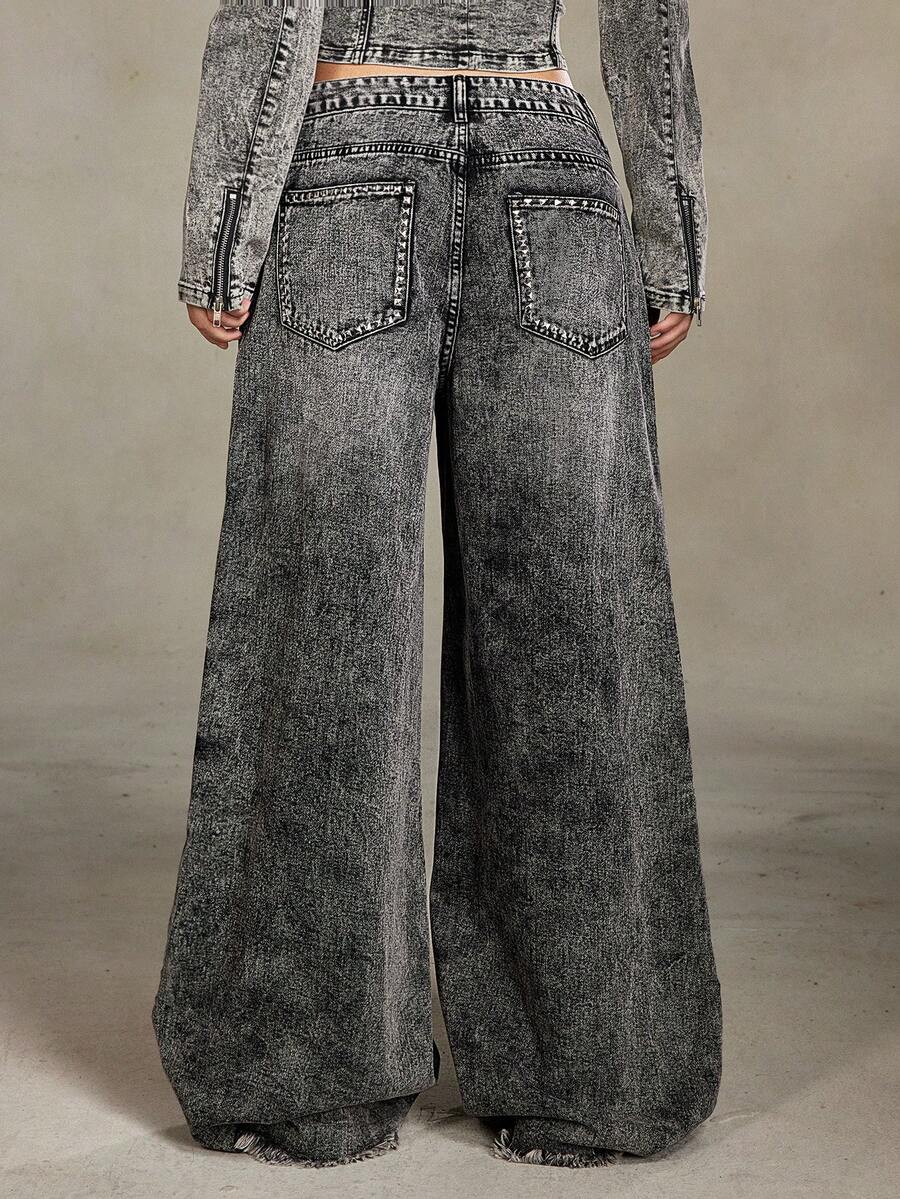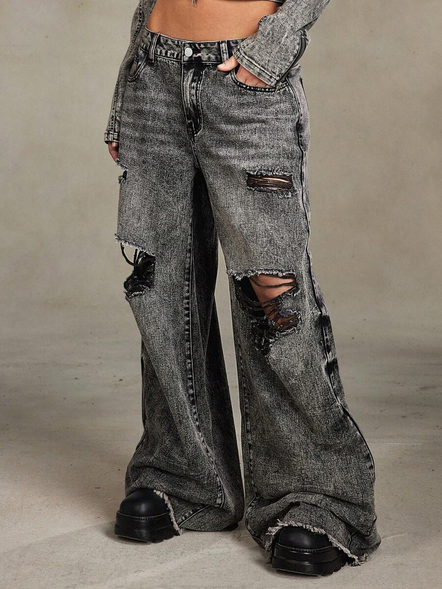 Grunge Punk Vintage PUNK Distressed Fringe Raw Hem Low-Rise Flared Jeans