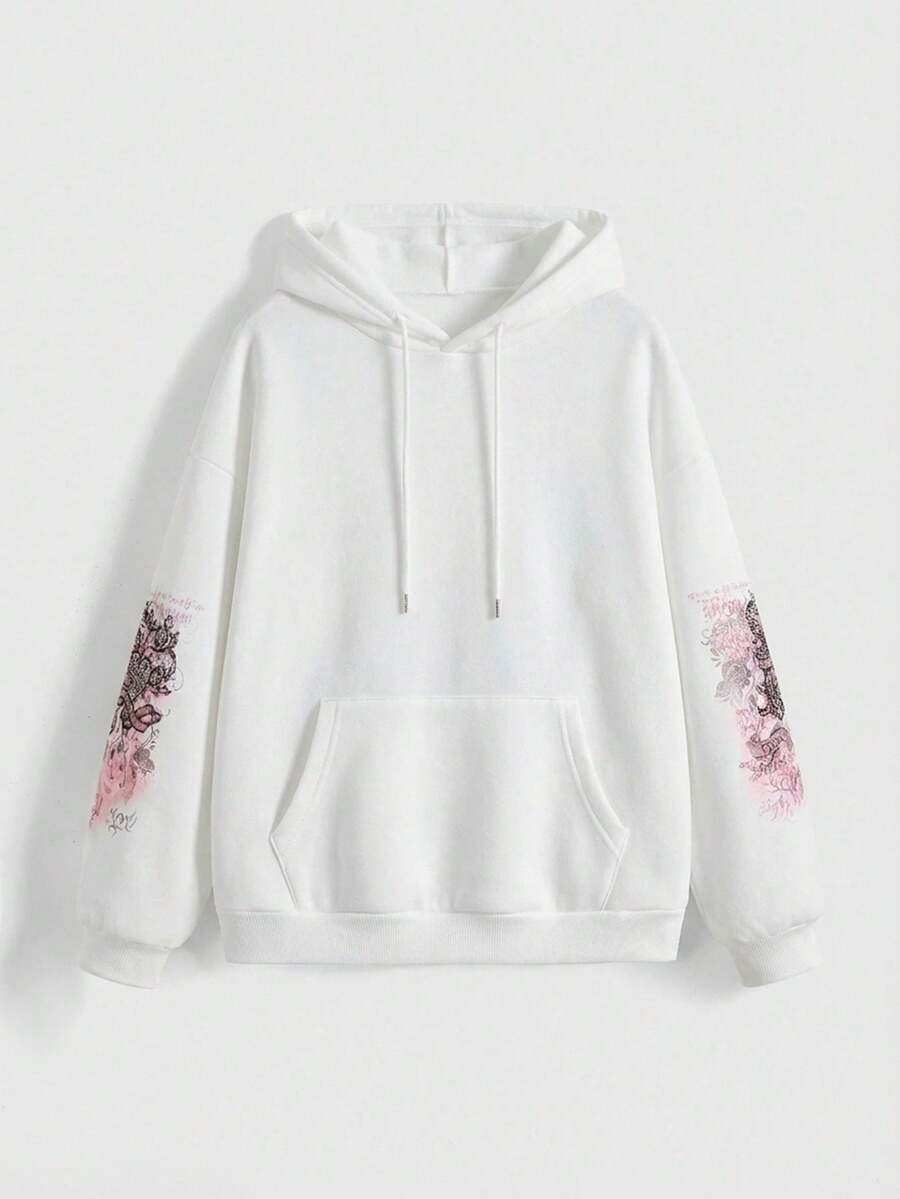 Grunge Punk Vintage Romantic Rose Floral Vine Heart Rhinestone Embellished Pullover Sweatshirt, Autumn/Winter