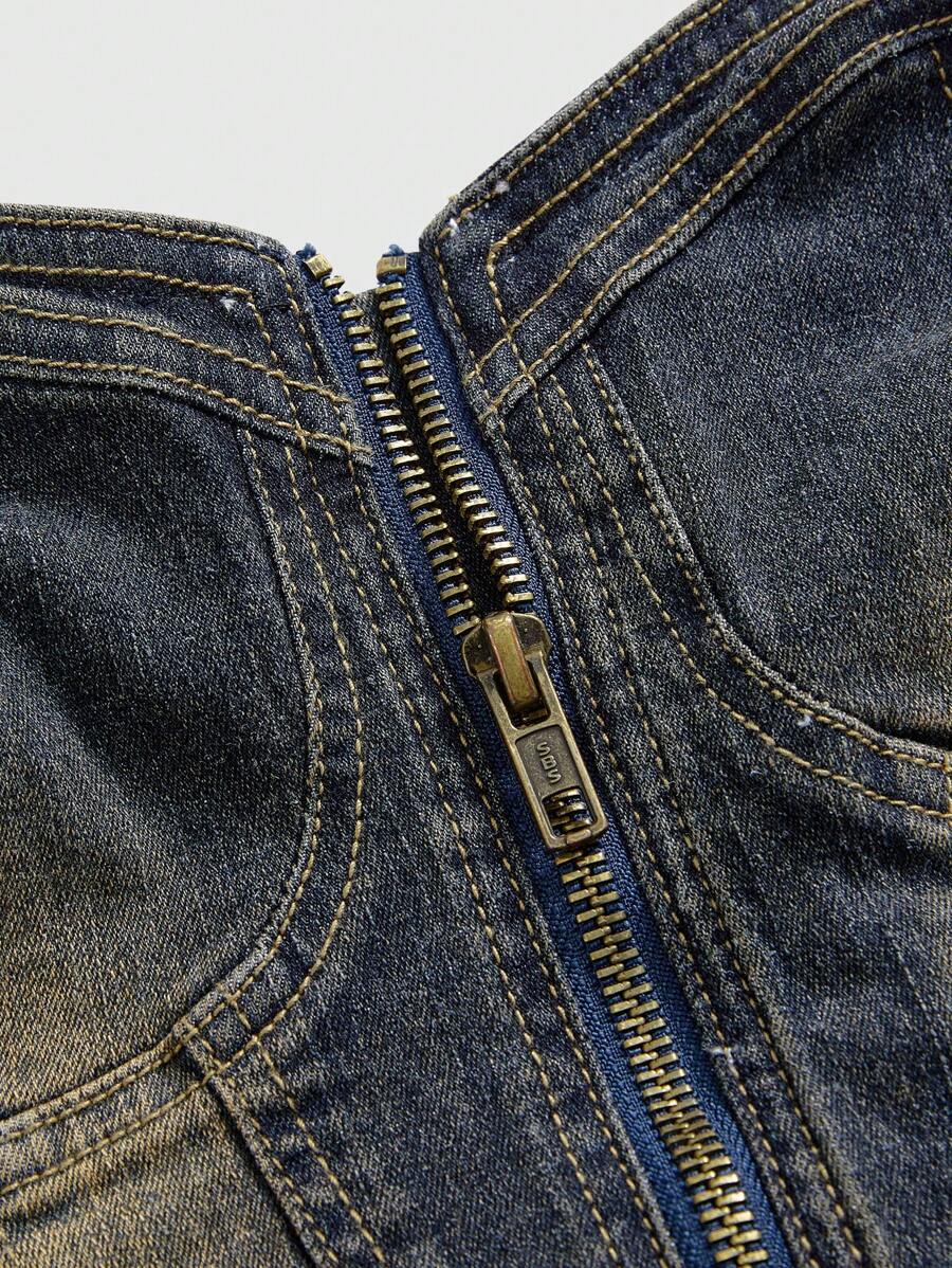 Grunge Punk Vintage Sexy Distressed Cropped Denim Bustier Top