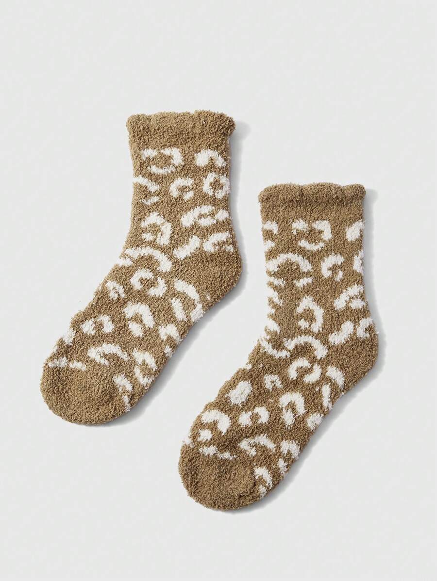 Grunge Punk Women Leopard Print Fashion Crew Socks, Suitable For Autumn/Winter Wear