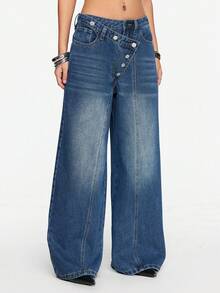 Grunge Punk Women's Asymmetric Patchwork Denim Jeans