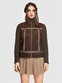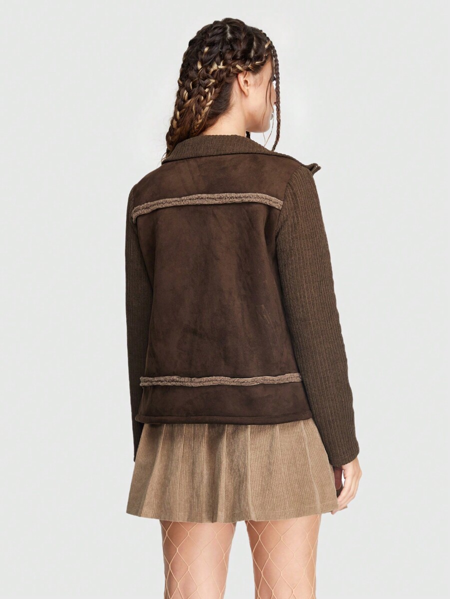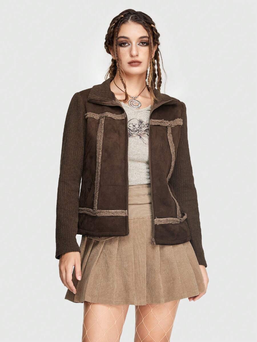 Grunge Punk Women's Coffee-Colored Thermal Lined Suede Warm Coat