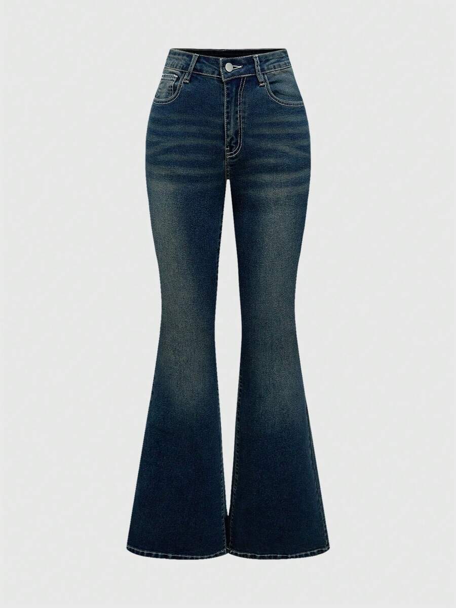 Grunge Punk Women's Cross Embroidered Rhinestone Embellished Flare Jeans