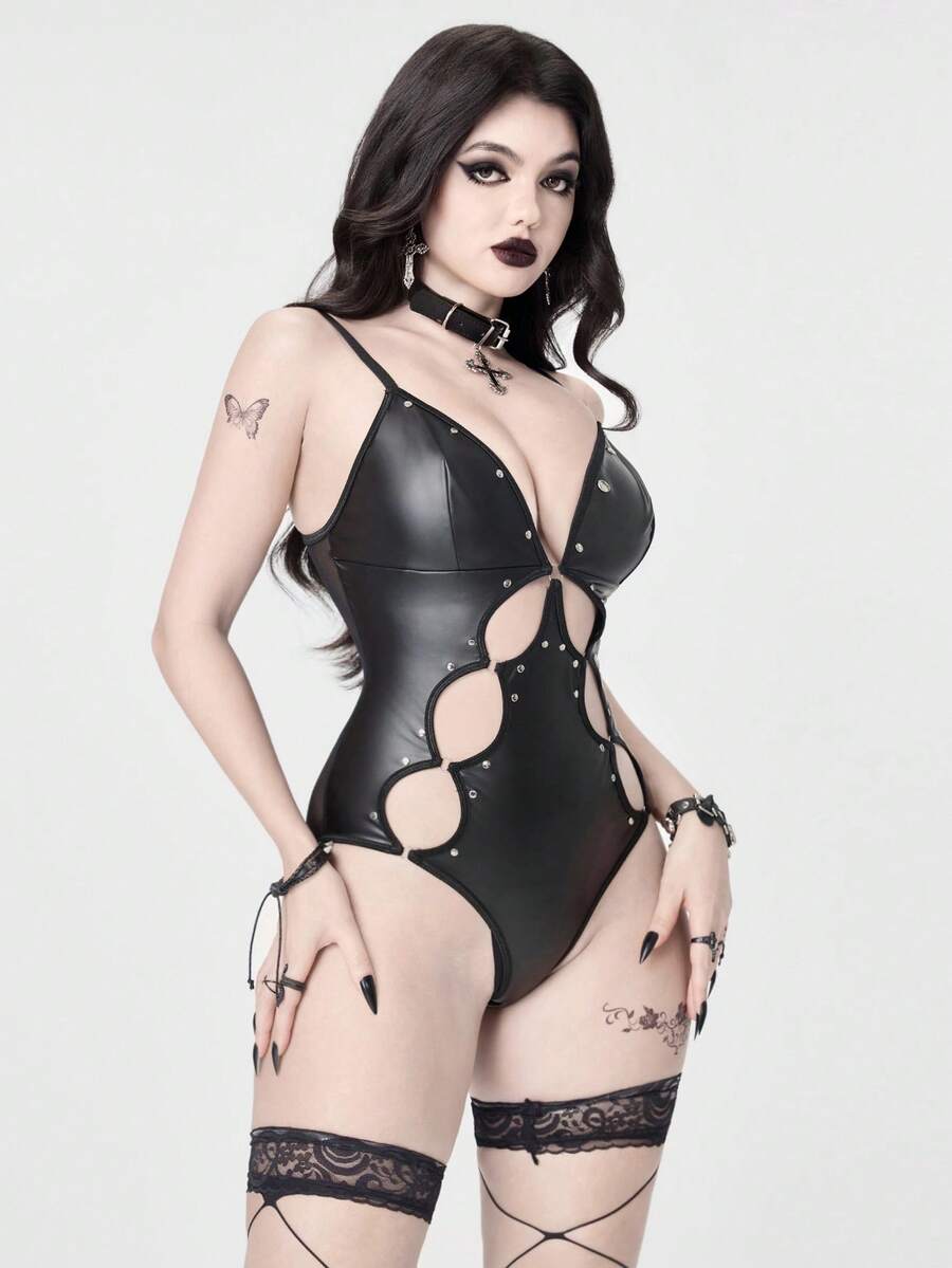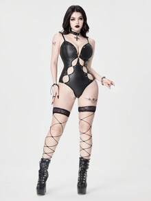 Grunge Punk Women's Dark Punk Music Festival Party PU Studded Hollow Sexy Jumpsuit