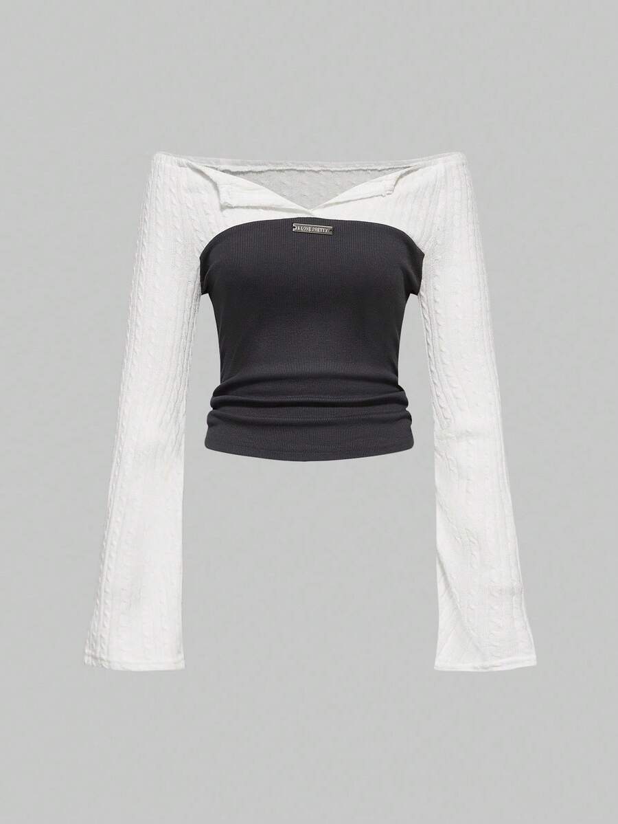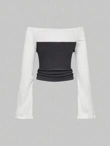 Grunge Punk Women's Fitted Off-Shoulder Textured Flare Sleeve Blouse