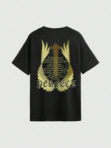 Grunge Punk Women's Punk Wings Graphic Print Loose Fit Round Neck Black T-Shirt