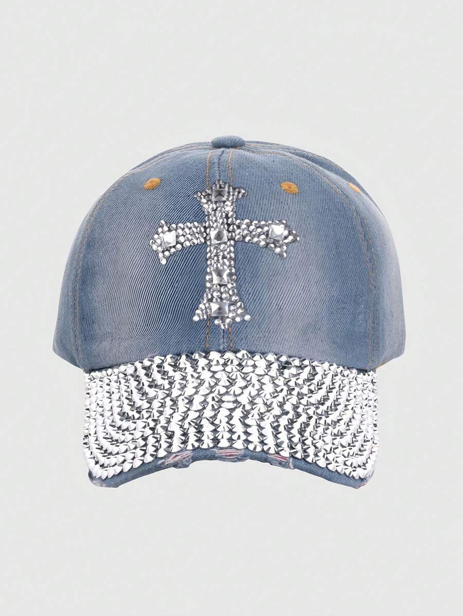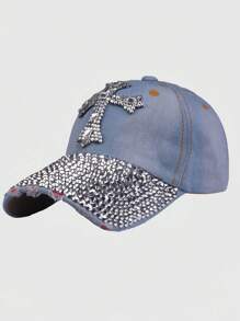 Grunge Punk Women's Rhinestone Baseball Cap, Outdoor Sports Casual Cross Embellished Sun Hat
