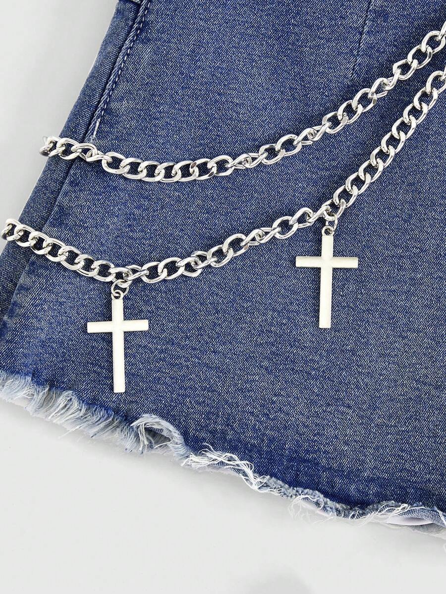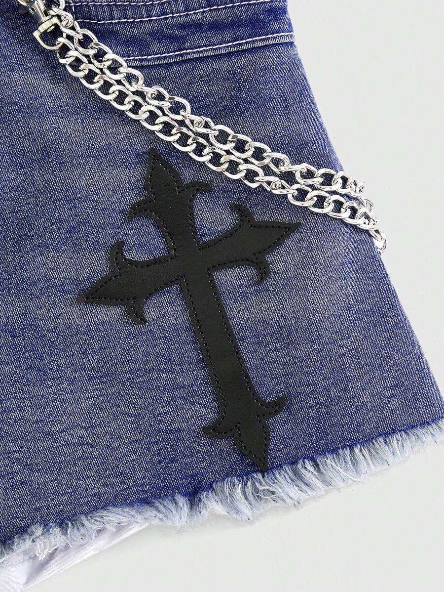 Grunge Punk Women's Sexy Y2K Gothic Slogan & Web Printed PU Cross Super Low-Waist Mini Denim Skirt, Spring Break Concert Rave Festival Holiday