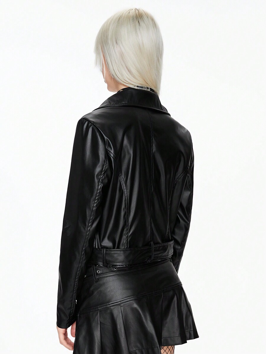 Grunge Punk Women's Solid Color Front Zipper Long Sleeve Casual Jacket, Everyday Wear