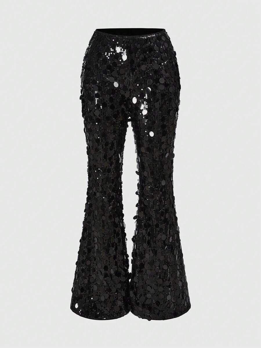 Grunge Punk Women's Sparkly Sequin Music Festival Flare Pants, Low Waisted Holiday/Graduation/Party Wear