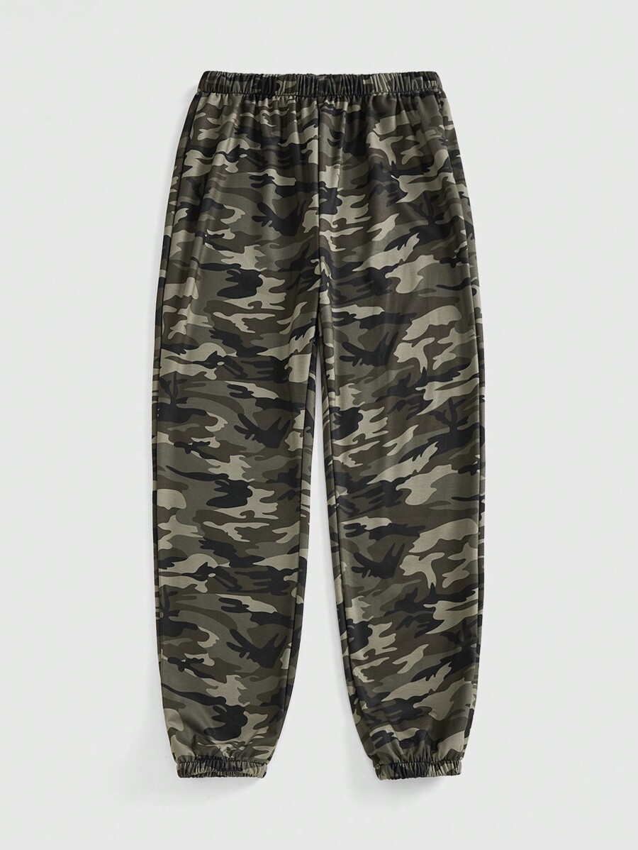 Grunge Punk Women's Vintage Camouflage Print Elastic Waist Loose Casual Sweatpants