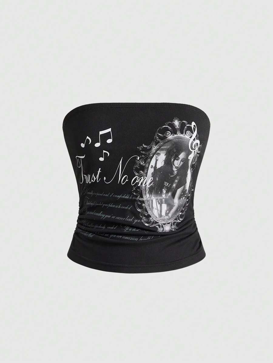Grunge Punk Women's Y2K Millennium Retro Music Note & Silhouette Print Top