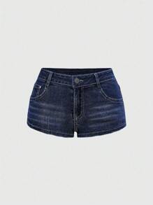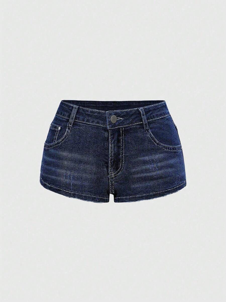 Grunge Punk Women's Y2K Vintage Ultra Low Waist Distressed Mini Denim Shorts