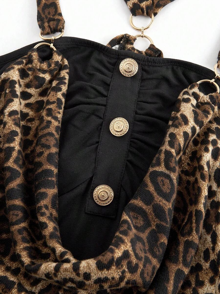 Grunge Punk Y2K Harajuku Style Leopard Print Patchwork Spaghetti Strap Dress With Plunging Neckline