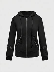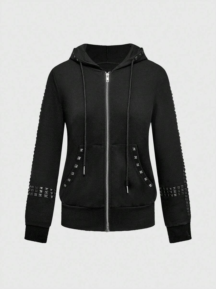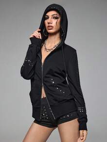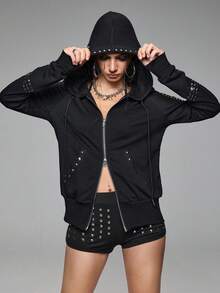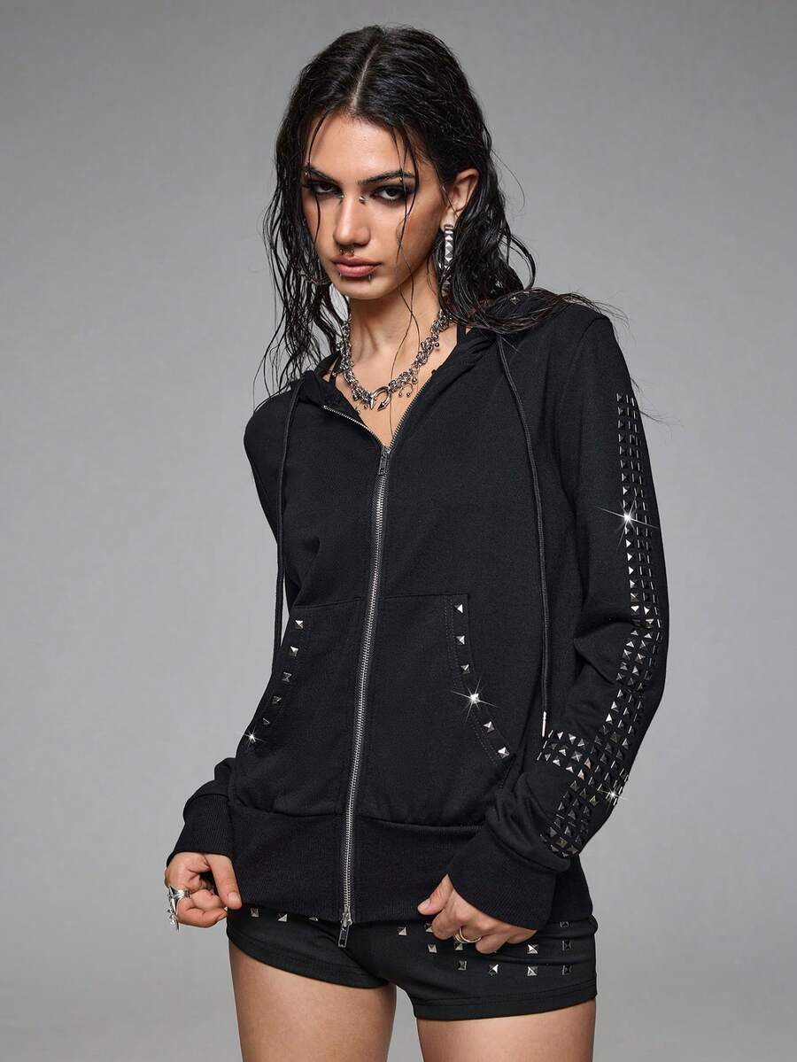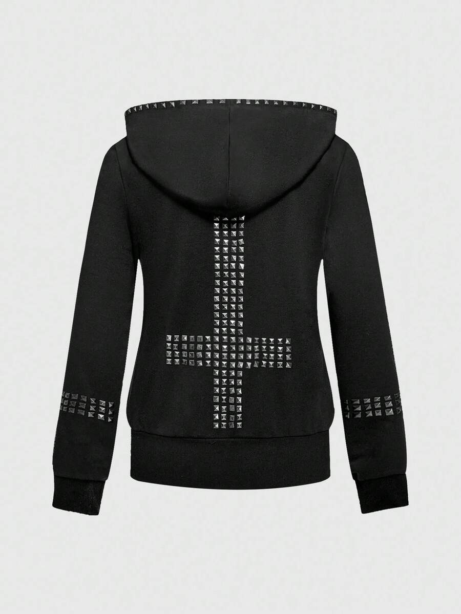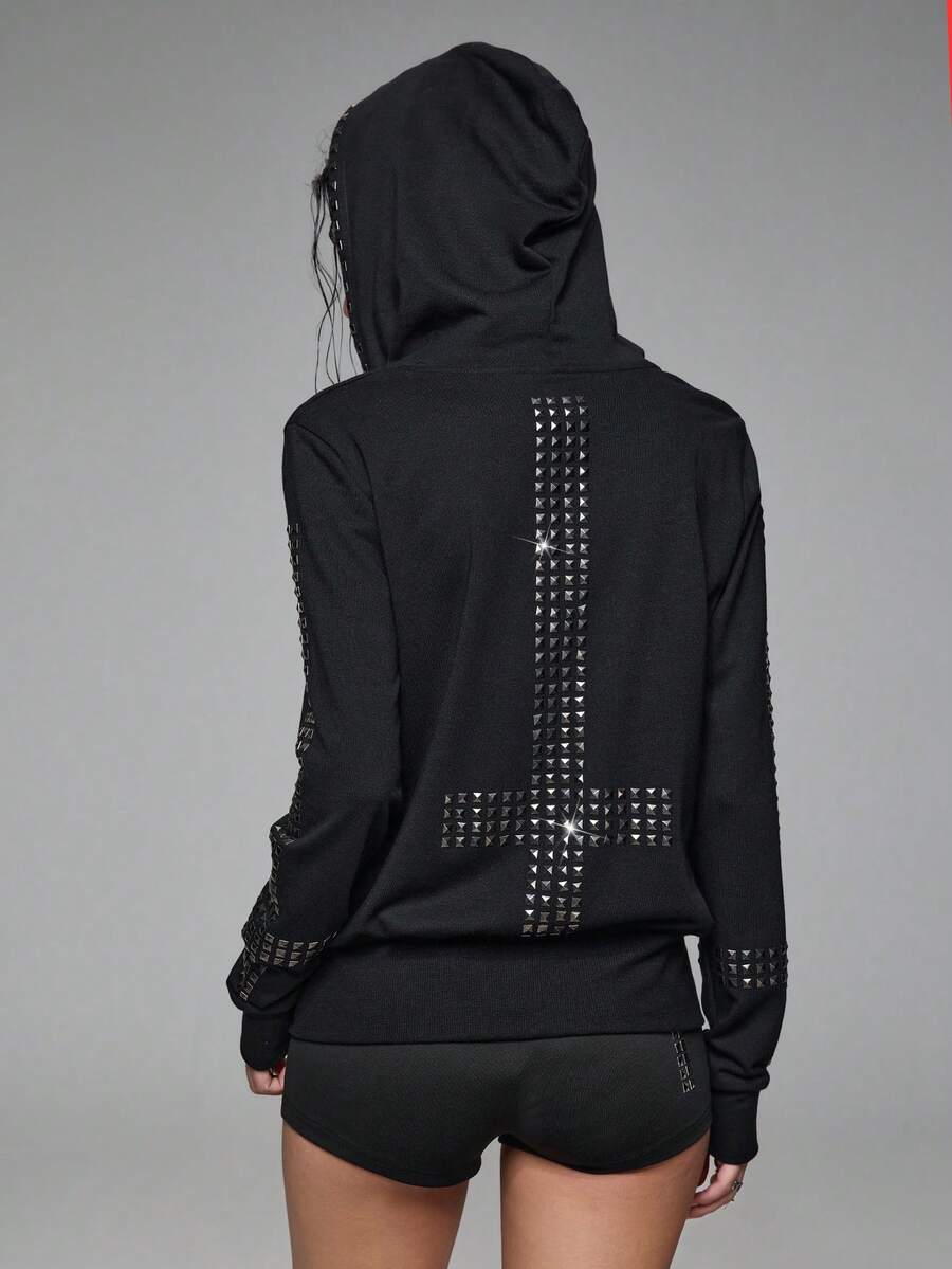 Grunge Punk Y2K Punk Hot Girl Cross Rivet Rhinestone Embellished Women Hooded Sweatshirt Sweatshirt