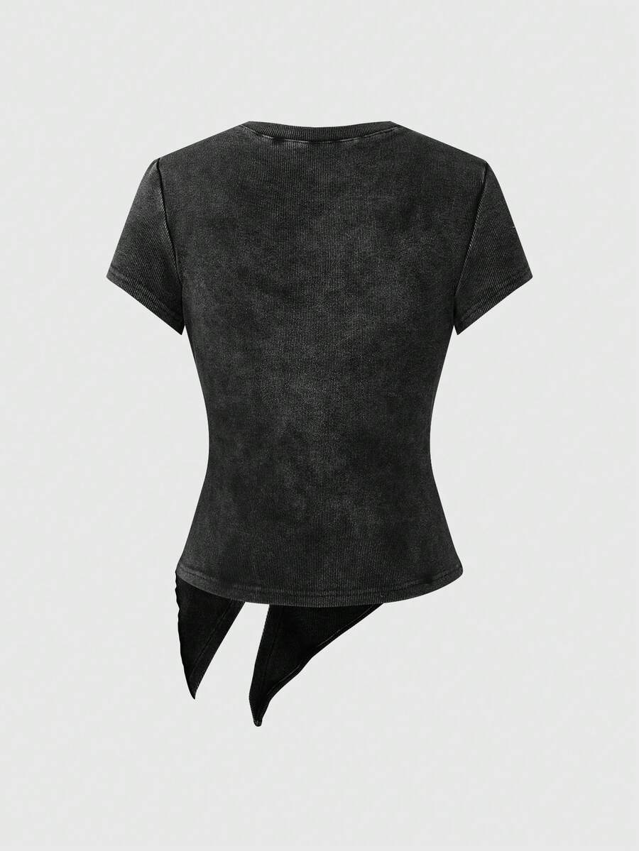 Grunge Punk Y2K Punk Paperclip Decor Asymmetrical Hem Tight Fit Women T-Shirt