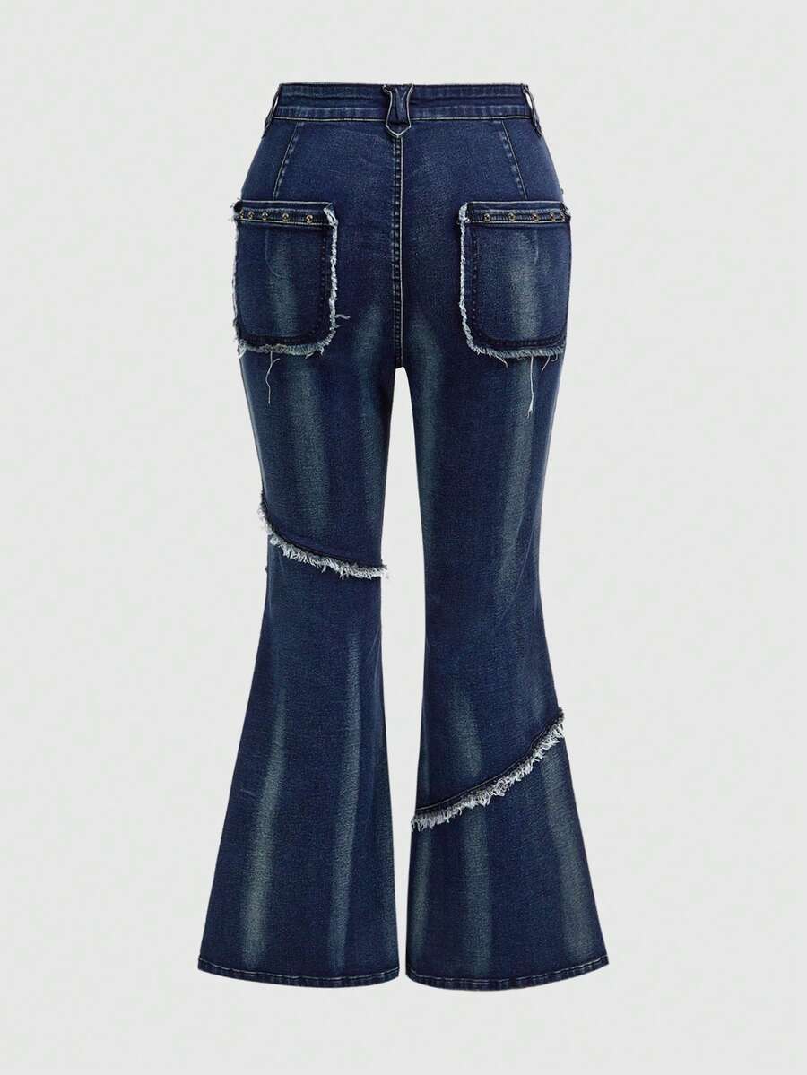Grunge Punk Y2K Punk Rivet Decor Distressed Vintage Wash Skinny Flare Plus Size Jeans