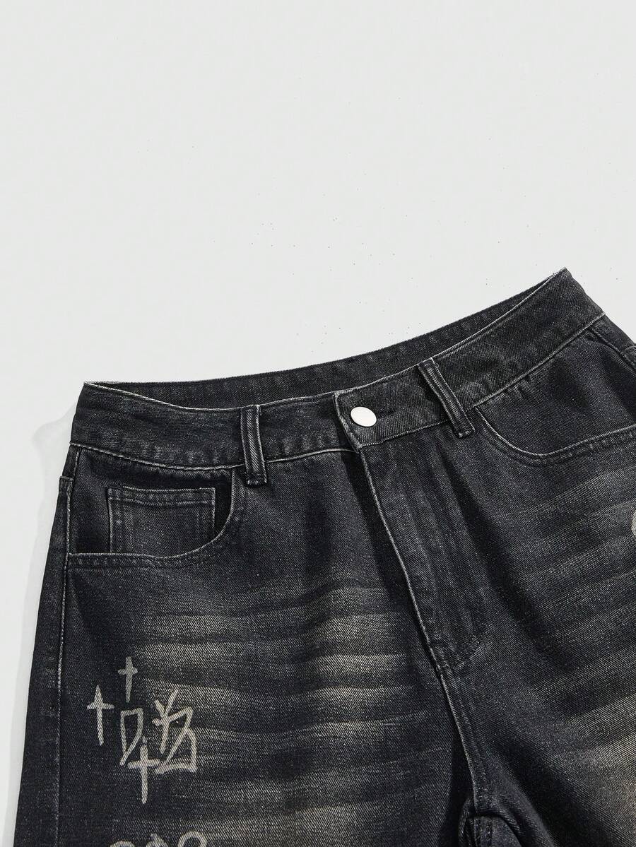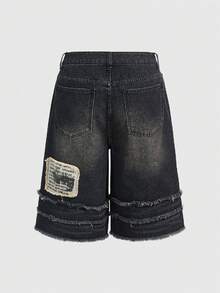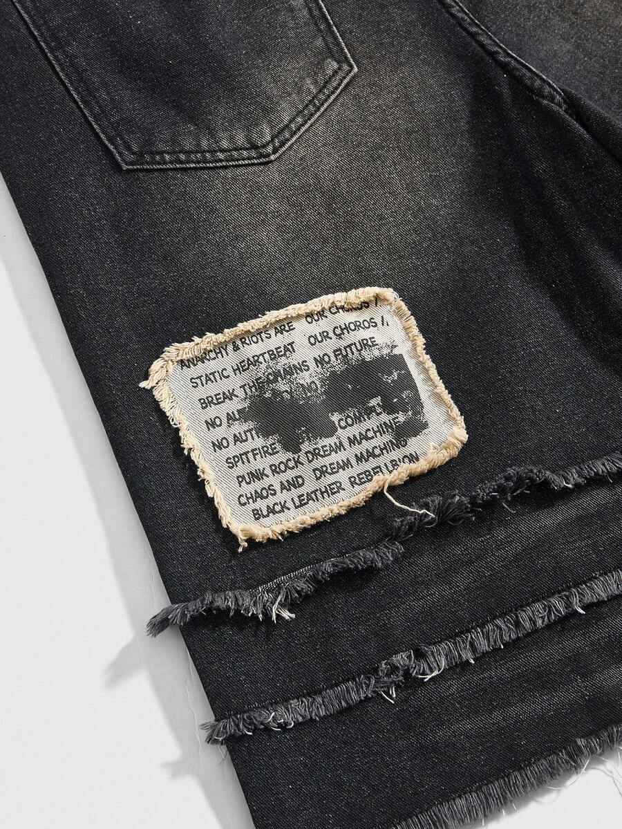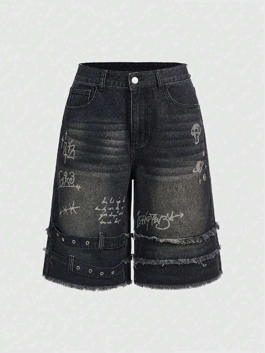 Grunge Punk Y2K Retro Street Chic Unisex Loose Fit Distressed Hem Casual Denim Shorts