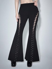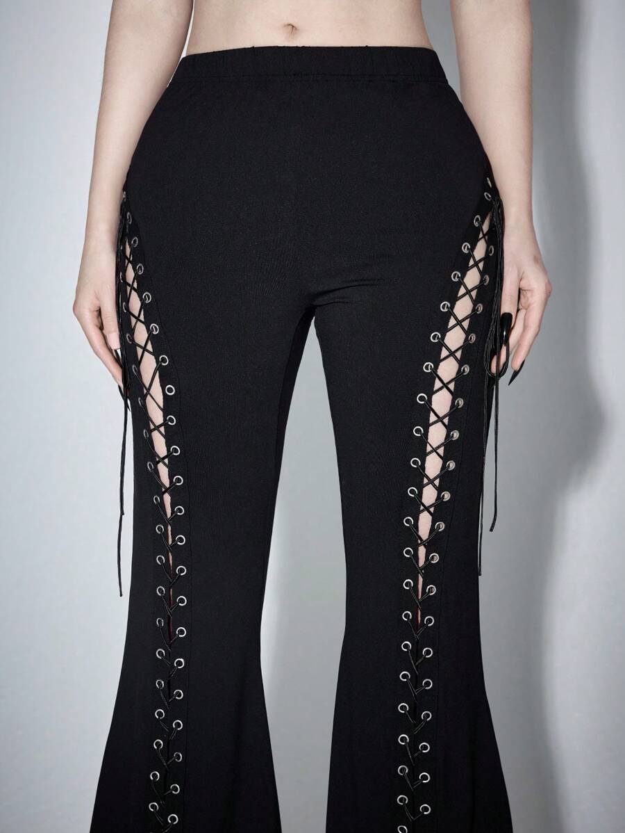 Grunge Punk Y2K Sexy Hollow-Out Rope Design Bodycon Flare Pants