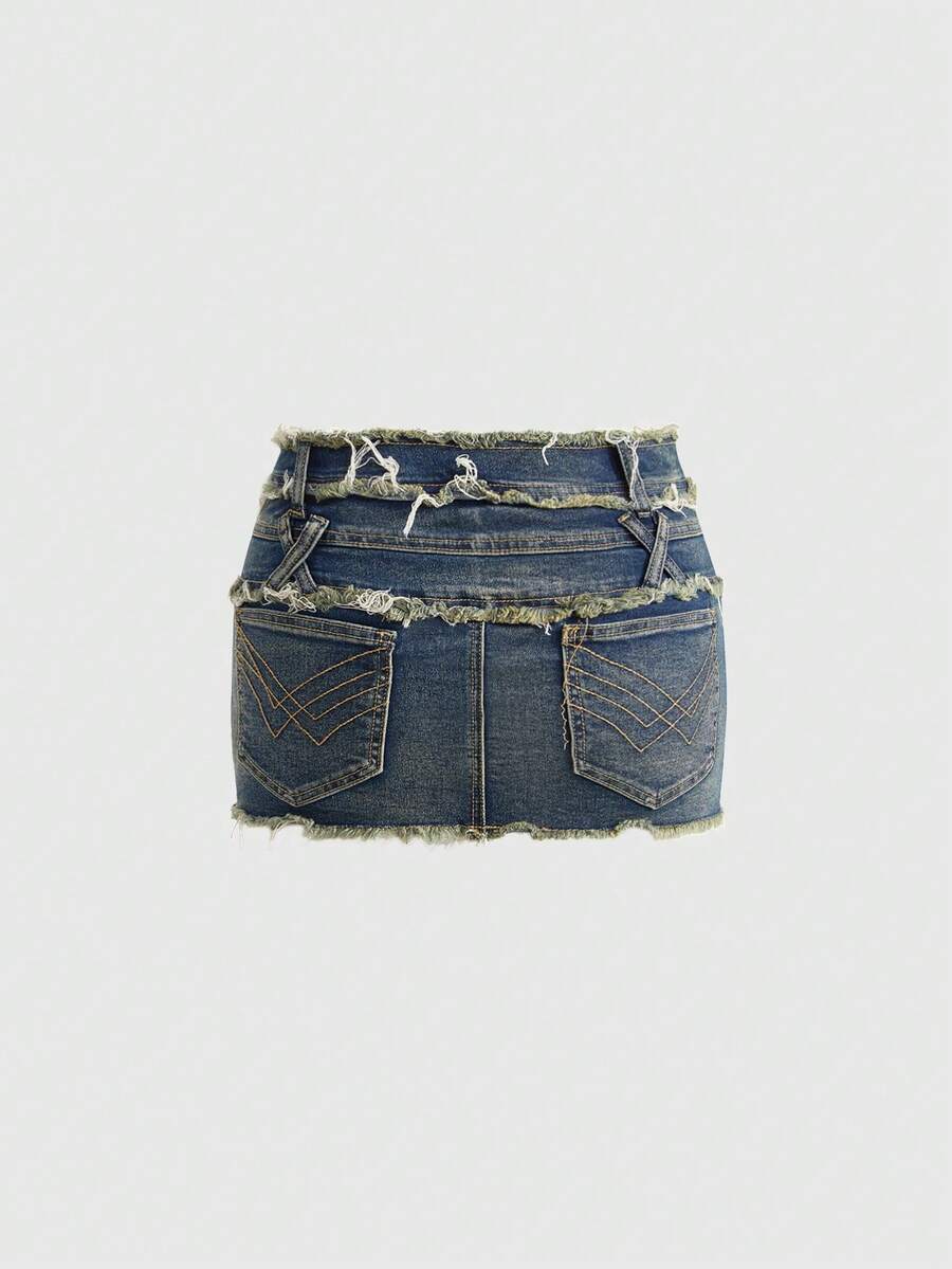Grunge Punk Y2K Vintage Millennium Baddie Distressed Frayed Hem Bodycon Mini Skirt