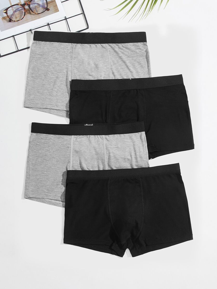 Guys 4pcs Top-stitching Contrast Tape Boxer Brief