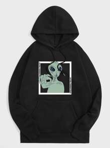 Guys Alien & Letter Graphic Raglan Sleeve Drawstring Kangaroo Pocket Hoodie