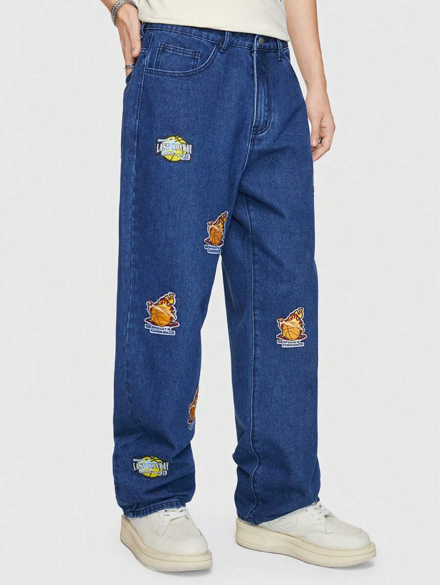 Street Life Guys Basketball Patched Straight Leg Jeans