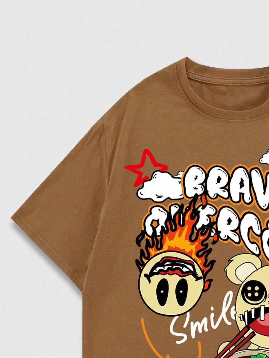 Street Life Guys Cartoon & Letter Graphic Tee
