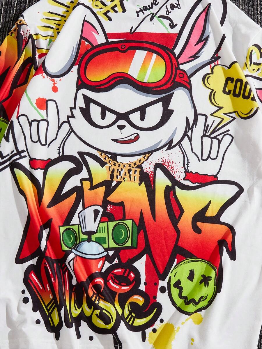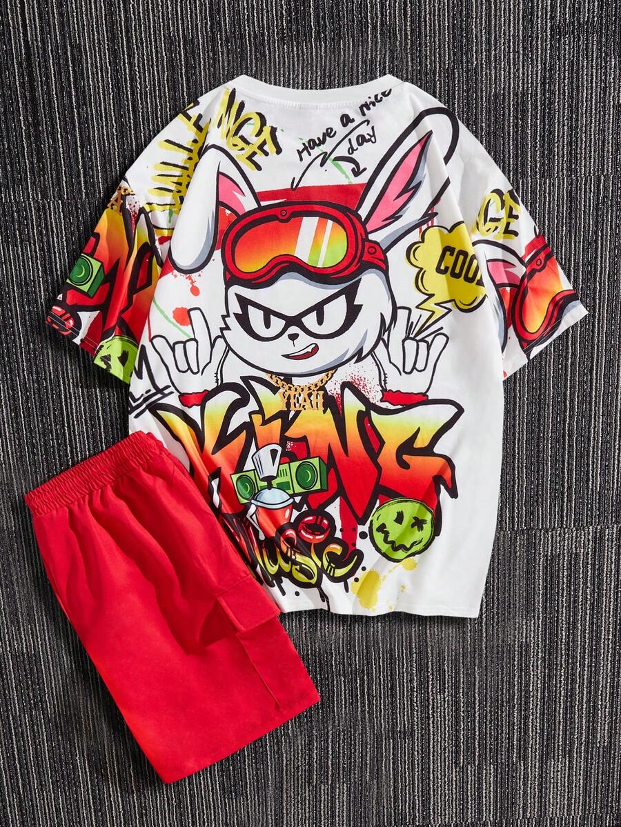 Guys Cartoon & Letter Graphic Drop Shoulder Tee & Shorts