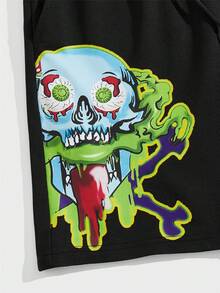 Guys Cartoon & Slogan Graphic Drawstring Waist Shorts