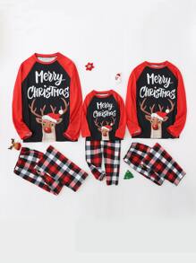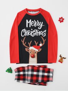 Guys Christmas And Plaid Print 1pc Sleep Tee With 1pc Pants