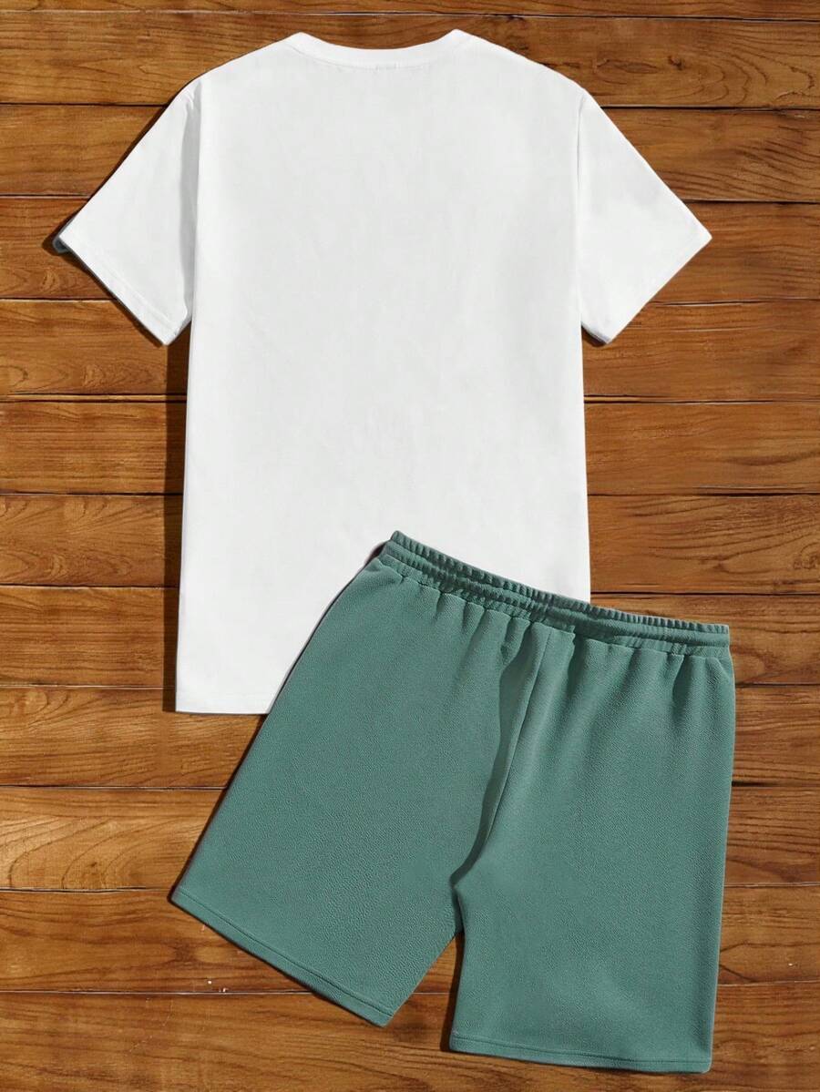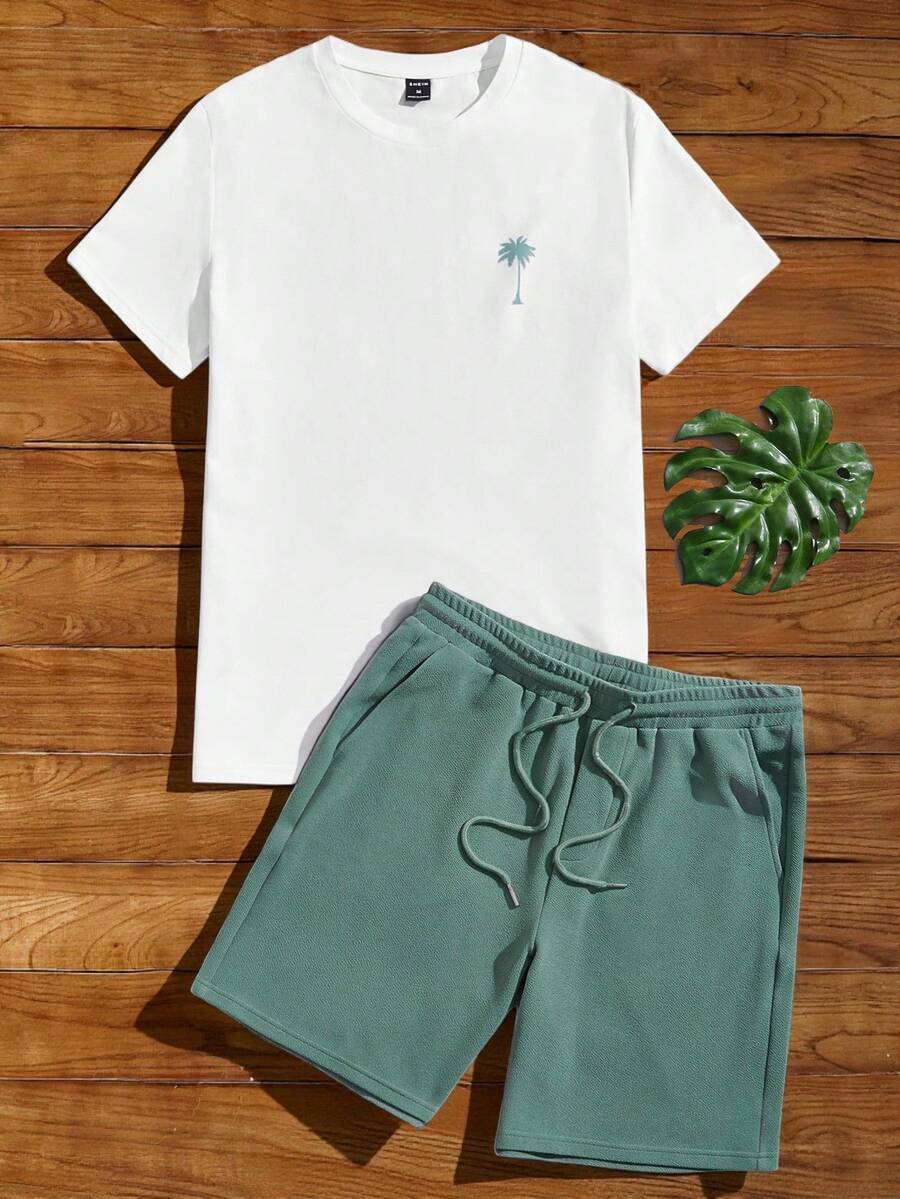 Guys Coconut Tree Print Tee & Drawstring Waist Shorts