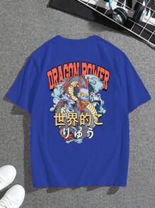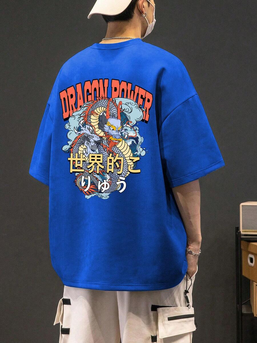 Guys Dragon & Letter Graphic Drop Shoulder Tee