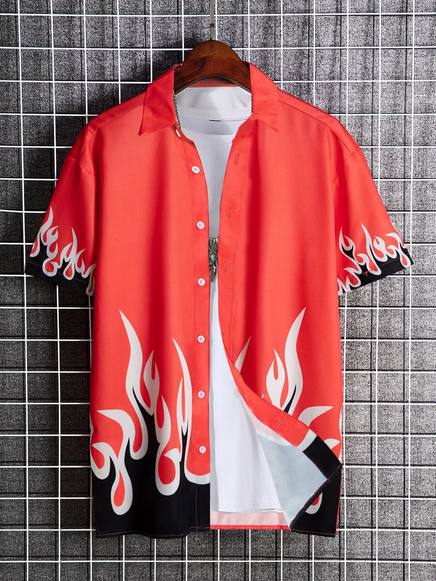 Guys Fire Print Shirt Without Tee