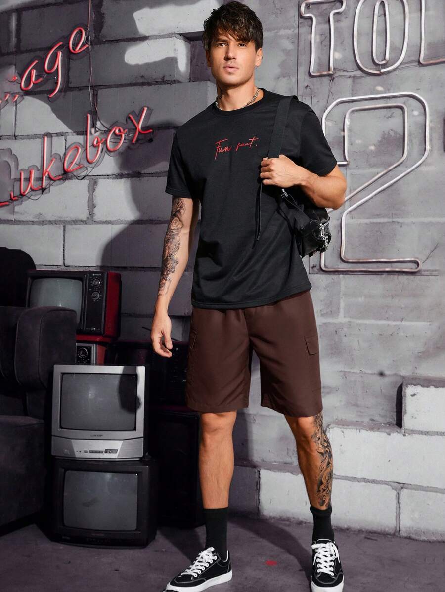 Guys Flap Pocket Drawstring Waist Cargo Shorts